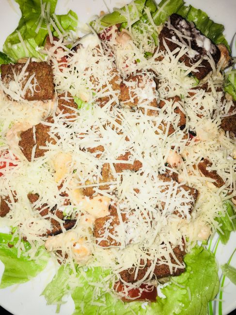 Почему все любят цезарь, я не понимаю. Мне не нравится сочетание мягких продуктов с сухарями...