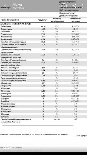 а одну меня смущает к-во лейкоцитов? с те-рой и лейкоцитами 68 я бы к гематологу уже побежала.