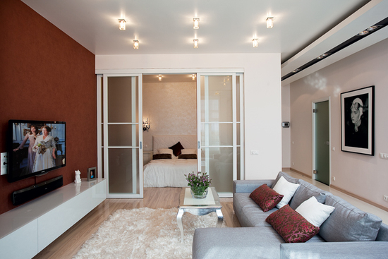 Якщо кімната велика, то ділити її навпіл. Частину без вікна об´єднувати з кухнею або коридором і робити там вітальню.