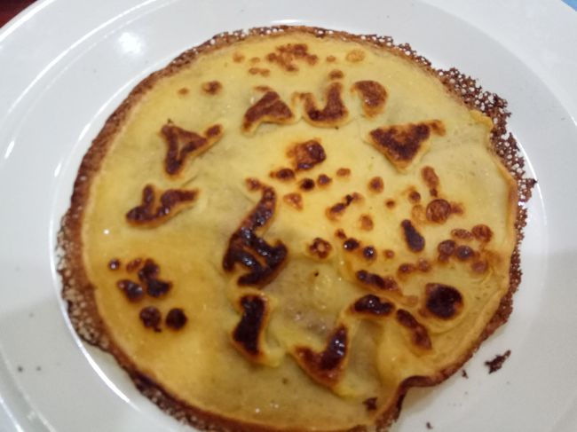 Муж делает блины на ней - отлично. Яйцо, молока чуть и рисовая мука. Блины как блины )