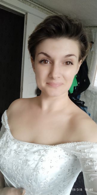 Девочки со вкусом, помогите пожалуйста советом. Дано такое платье. Мако-сатин цвета diamond white, нежная вышивка шелковой нитью и бисером, сваровски и прочей мелочью на рукавах, лиФе, спинке и шлейфе. Для понимания покажу фото вишивки кусочек. Какие мне нужны аксессуары? Фаты не будет. Думаю диадемку аккуратную, но у меня короткая стрижка, как оно будет?.. На шею ничего не хочу совсем. Серьги думала гвоздики. А теперь послушаю ваше мнение. Просьба внешность не критиковать, уж чем Бог наделил, с тем замуж и пойду.