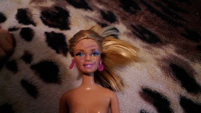 Только на днях случайно увидела видео лайфхак, как на лицо Барби нанесли пасту зубную блендамед и ватным диском стёрли фломастер.)