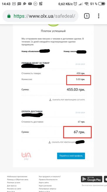 На ОЛХ отображается фактическая сумма оплаты 67 грн(из них 5 грн комиссии) , а в кабинете Новой Почты сумма на 10 грн больше(77 грн). Т.е. НП хочет доплаты в 10 грн при получении.