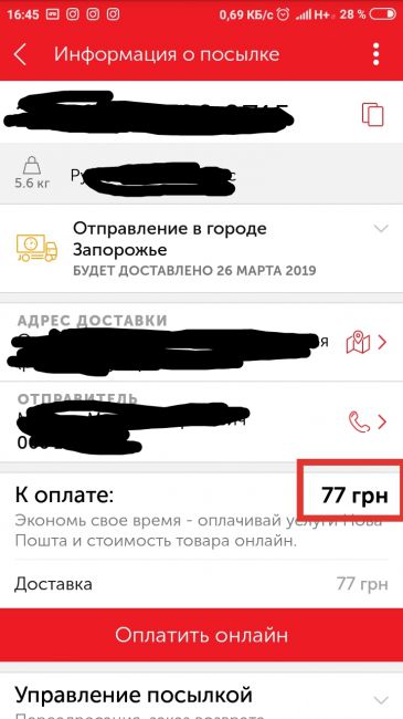 Заказали товар через ОЛХ с услугой “доставка ОЛХ”, т.е. по факту с доставкой Новой Почтой.
