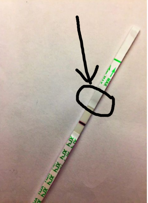 Есть такие тесты, у меня тоже попадался такой, там место ’склейки’ действительно выглядит как вторая полоска, только расположена она значительно выше чем должна быть(