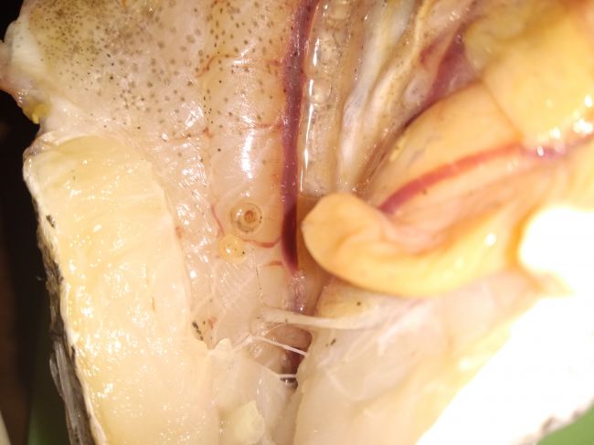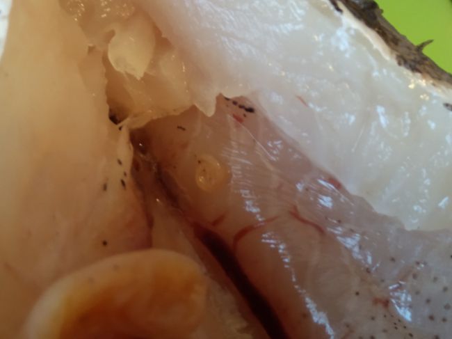 о, ужас, так в рыбьи внутренности еще и с лупой лазить нужно, а я просто руку всунула и выбрала все, что там есть, и выкинула, не рассматривая, кошмар, может, там регулярно глисты, а рыбу едят у меня все.
