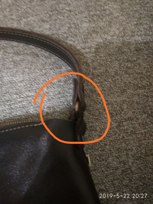 На кожаной сумке с одной стороны растянулся сильно ручкодержатель