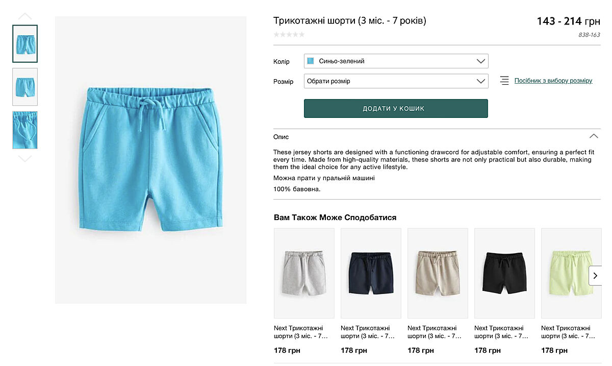 P.s. дитячий одяг замовляю на next, але теж не все подобається, нажаль - наприклад, сліпи в рубчик не сподобались, шкарпетки і пінетки також не сподобались. А ось боді, лосіни, футболки дуже сподобались. Тому і вагаюсь, чи варто купувати, чи, якщо потрібна нормальна якість не на 1 сезон, то краще інші бренди пошукати.