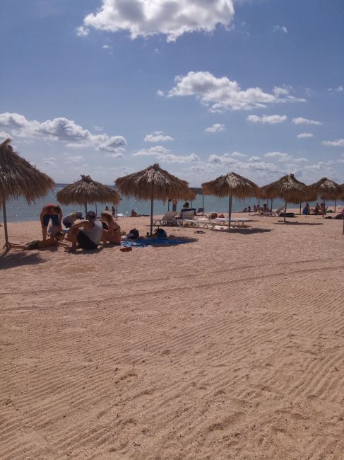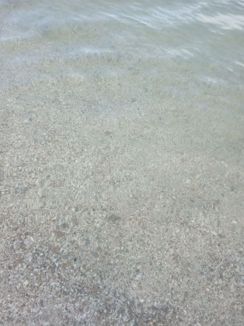 Мы сегодня проспали пляж, а вчера при прохладном ветре у нас был полный штиль и очень теплая вода. Мы с семи до восьми вечера купались.
