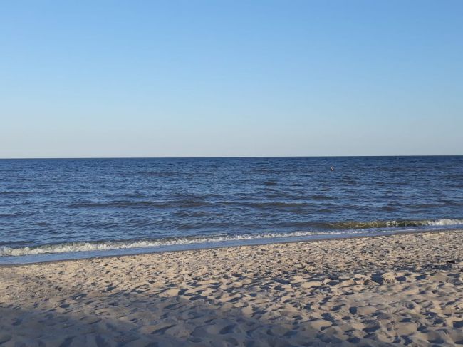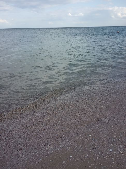 та есть сливаетсяз горизонтом, за спорт.площалкой и пляжами, гребней волн нет, штиль
