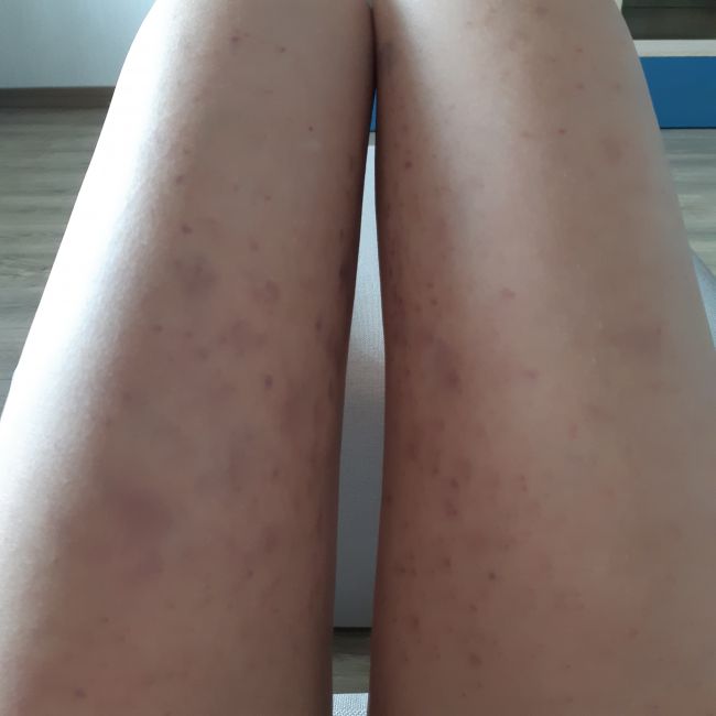 Синяки такі маленькі. Прищів нема, шкіра гладесенька