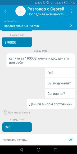 После предложения в 50 грн, думала заблочить, чтобы не доставали, но воздержалась. Решила посмотреть следующее предложение... купили по стартовой цене! Даже удивили)