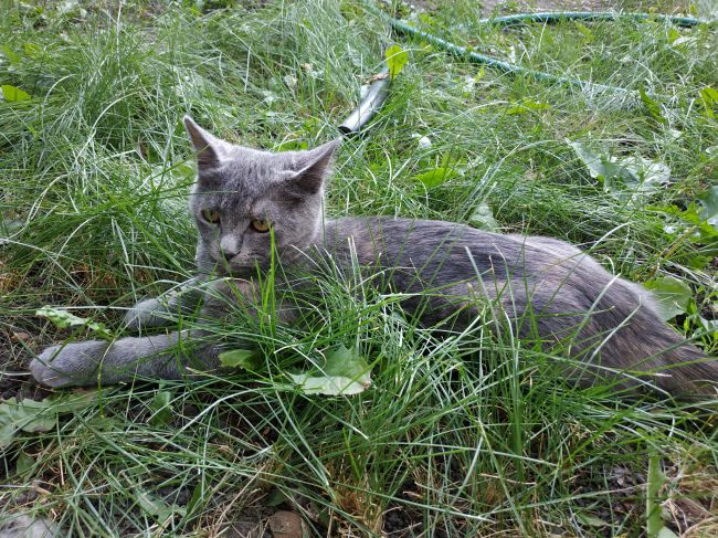 Кошечка вела себя с нами, как с сородичами. Так смешно играла. Когда шли с кухни в комнату, выпрыгивала на кресло, что возле двери и била лапой по плечу. Мы изображали перепуг и удивление, а она бегала от радости ))).