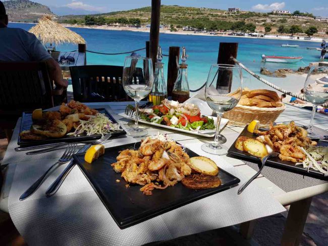 Я тут в соседней теме про Кипр уже расписывала цены, немного повторю. Были в Саранде в прошлом месяце, уже во второй раз. Цены в кафе/ресторанах: паста или ризотто с морепродуктами - 500 лек, ассорти из морепродуктов на двоих - 1800 лек, греческий салат - 350, дорадо - 800. Пицца около 500-700. Всякий фастфуд типа шаурмы 200. В супермаркетах цены на продукты ниже, чем у нас.