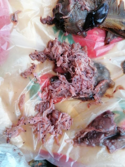 Рыба морская, наелась креветок... Я когда-то купила пеленгаса с креветками.