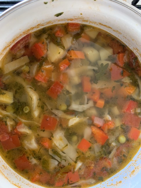 На ужин сейчас в духовку только что отправила картошку в мундире с овощами и курицей в медово-соевом маринаде. На обед завтра будем варить борщ.