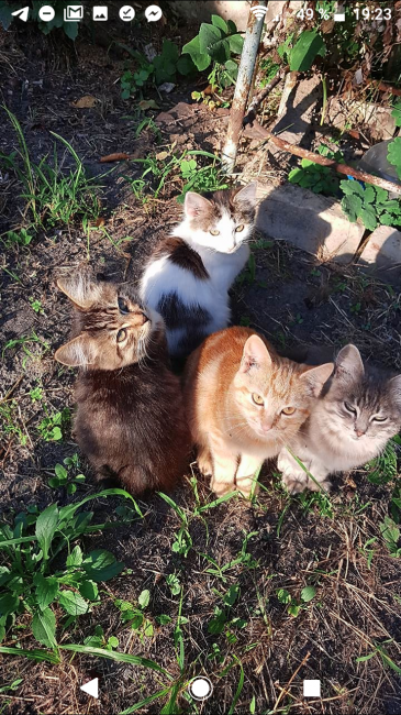 Девочки это звиндец, вышла в гараж за машиной, вижу стоит коробка огромная перемотаная скотчем и звуки страшного нявчания от неё исходят... Я туда, а там такое семейство! Котейки уже не маленькие, им месяцев 3где то. После открытия они давай выползать, я их ловить.. Это полный пипец был, рыжего вообще еле словила. Притащила в дом, муж увидел, наорал!!! У нас своих 3е, я его понимаю но просто оставить их на улице я не смогла ((