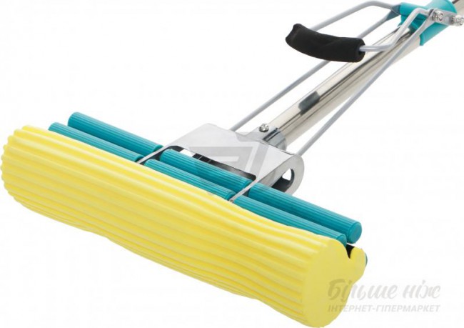 Вот такая насадка на длинной ручке, ну и ведро с отжимом. Эта насадка вообще 34грн., ручки у меня уже две)