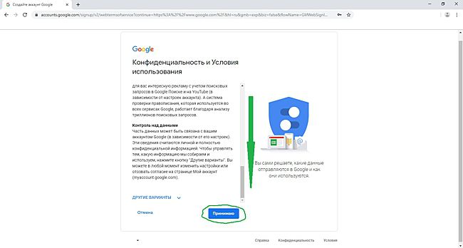 6. Прочитайте условия использования и нажимаете «Принимаю»