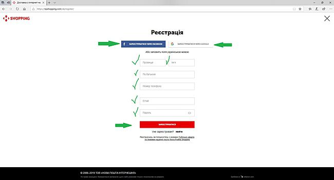 При выборе через e-mail заполняем все поля и нажимаем «Зареєструватися»