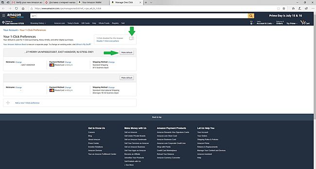 Включаем покупку в 1 клик на всех браузерах и выбираем адрес доставки NPshopping нажав возле него кнопку «Make default». После этого откроется окно, где выбираем Standard Shipping(4-5 business days).