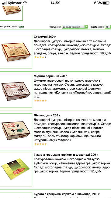 іноді в торг.мережі можна знайти Столичні, Мідний всадник, Пікова Дама, ровенськоі фабрики. Достойні, на вагу ще 《мальва》для мене найсмачніші《мідний всадник》, 《мальва》, але такі цукерки не завжди на верзніх полицях... треба знати іх і шукати.