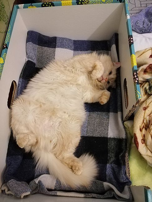Доречі коту можете віддати коробку від бебі боксу) В нас спить в коробці, а в ліжечко не лізе)