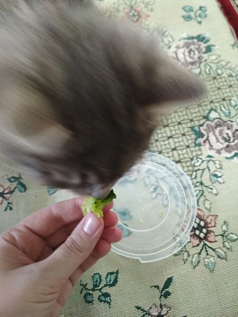 Кошка на натуралке. Даю каши гречневую, овсянку, озимую. с рыбой, печеночным паштетом, мясом. Добавляю овощи, цветную капусту, морковку, буряк, брокколи. Иногда даю вареное яйцо, Творог не жирный, йогурты, кефир. Со своего стола ничего не даю. Хотя котейка любит сладкое, хлеб, булки. Потому все приходится прятать, ибо потрощит все что найдет. Меню дала ветеринар.