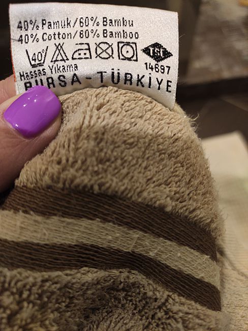 На постельном и полотенцах тоже указаны режимы и температура стирки