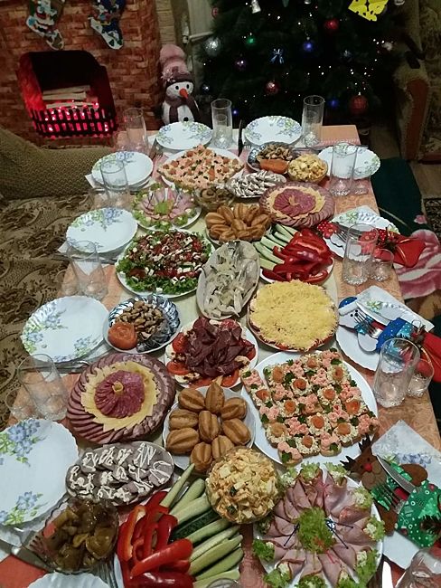 Ну-с, рассказывайте шо у Вас там смачненьке. Язык опознала, нарезки, мидии. Что за булочки? Салатики?