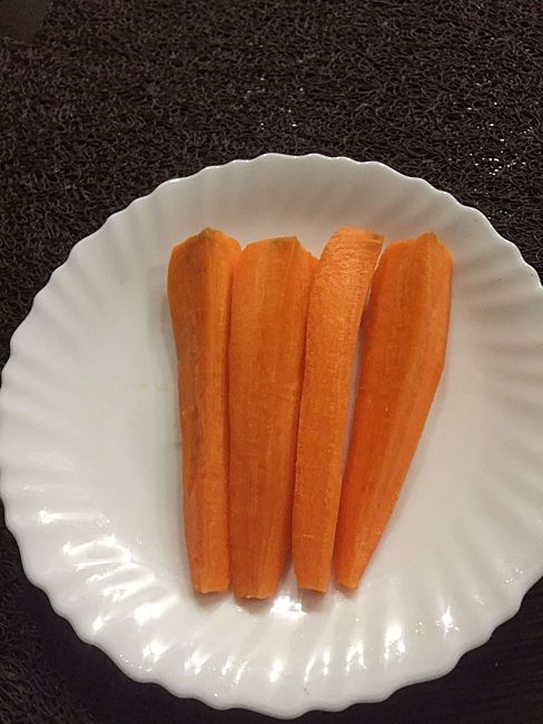 У нас был поздний обед, поэтому ужин символический. Муж чай попил с яблочным пирогом, а у меня морковка.
