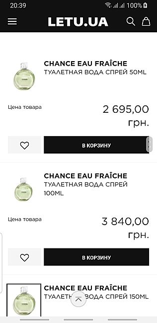 Подарил Шанель шанс о фреш 100 мл, а я хотела Шанс тендре. Этот пробовала когда-то в магазине, он для смелых и ярких, я не такая.