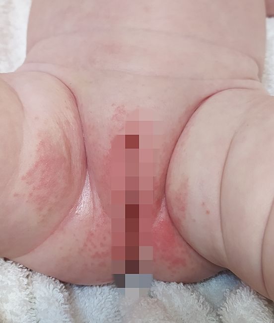 Решила сэкономить и чередовать польские подгузники да-да с японскими меррис. И вот что от польских. Покакала малышка, а я сразу не помыла.