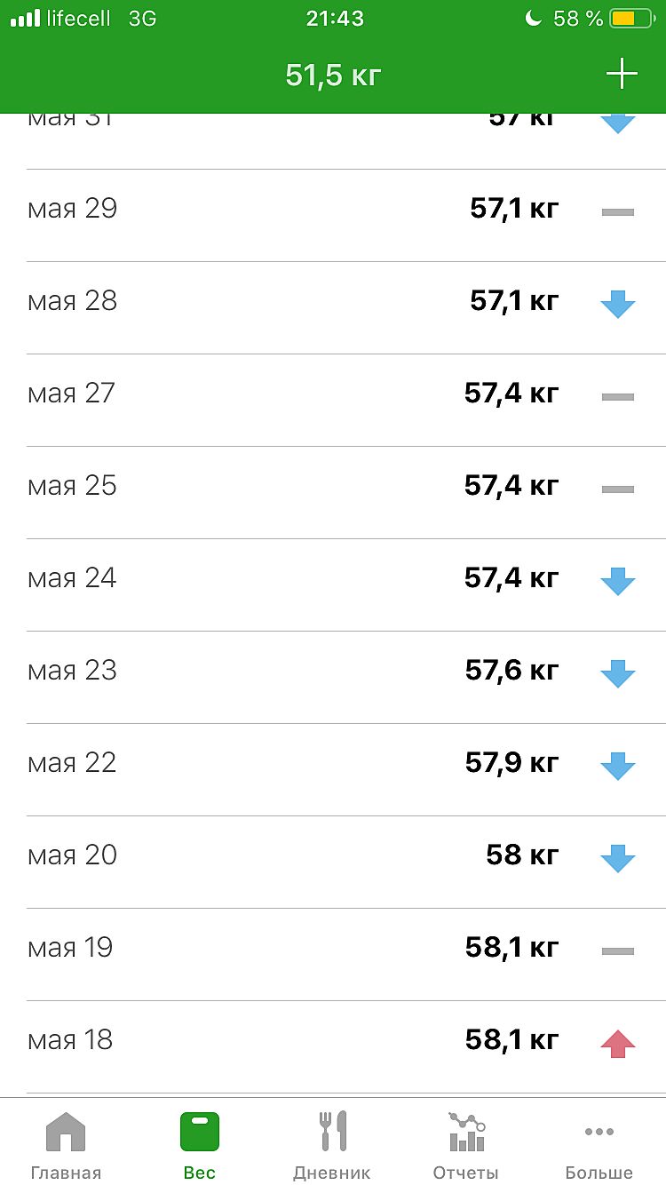 На 7 мая вес стоял мертво 3 недели. 8 мая читмилл, с 10-го пошёл вниз.