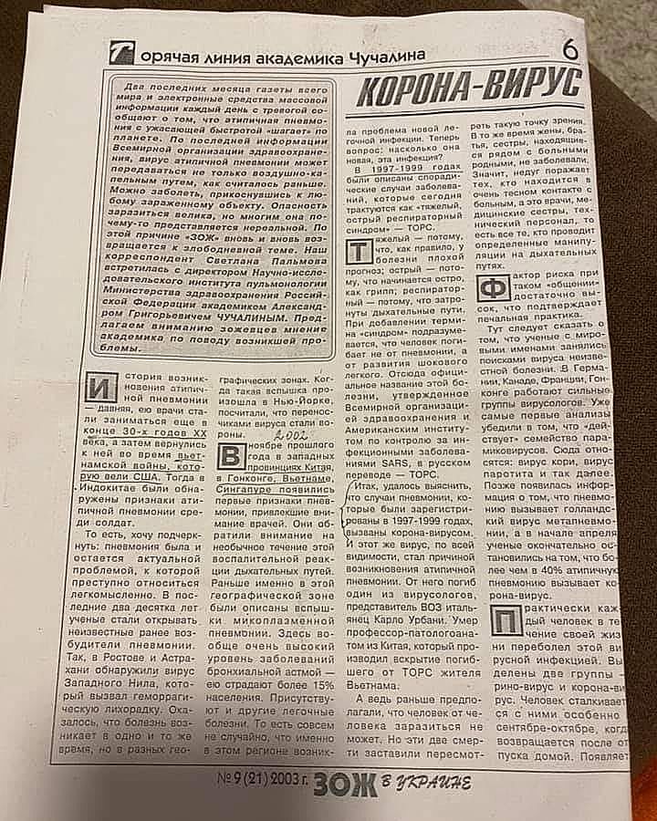 Так это SARS он же сейчас SARS-CoV-2, тогда тоже была ограниченная вспышка