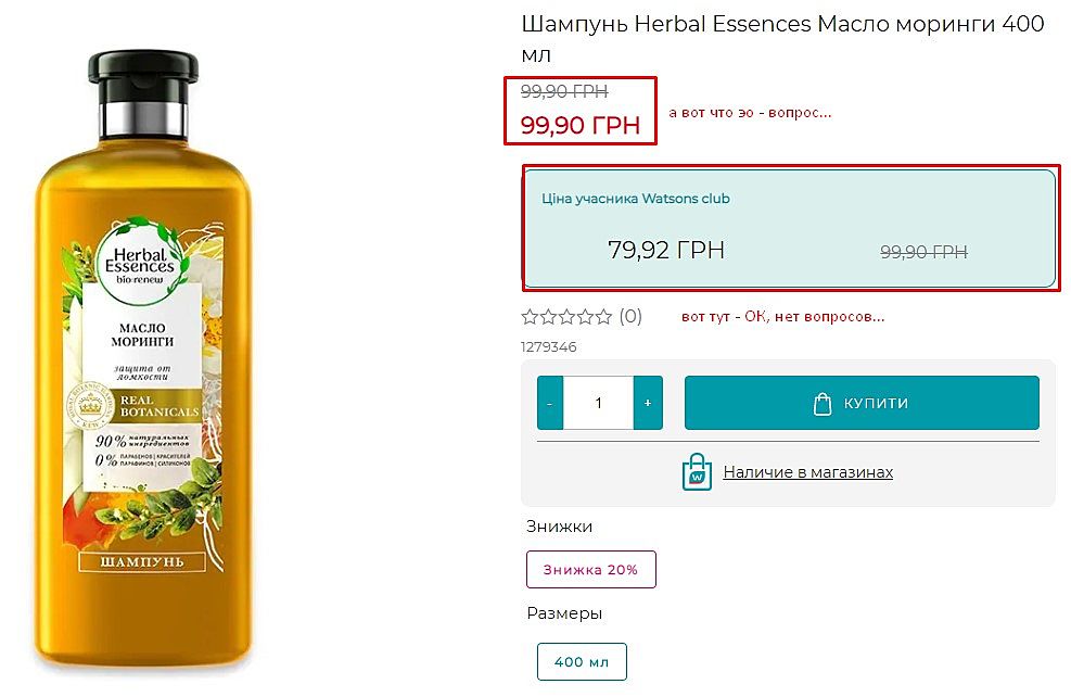 Натисніть на товар. Власникам карток ватсонс знижка, висвітиться інша ціна. Наприклад шампунь не 99, а десь 72грн. Точно ціни не запам´ятала)