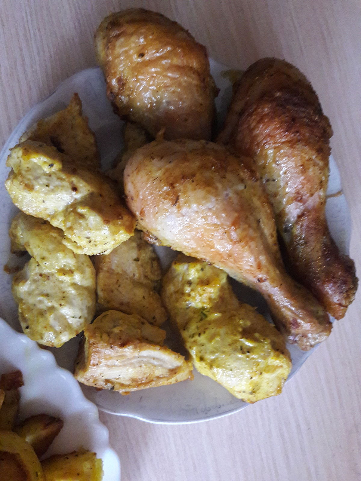 Автор, сегодня на ужин куриные тефтели начинкой из моцареллы, сливками полью и в духовку, картофель и салат на быструю руку (бри, черри, руккола в медовом соусе)