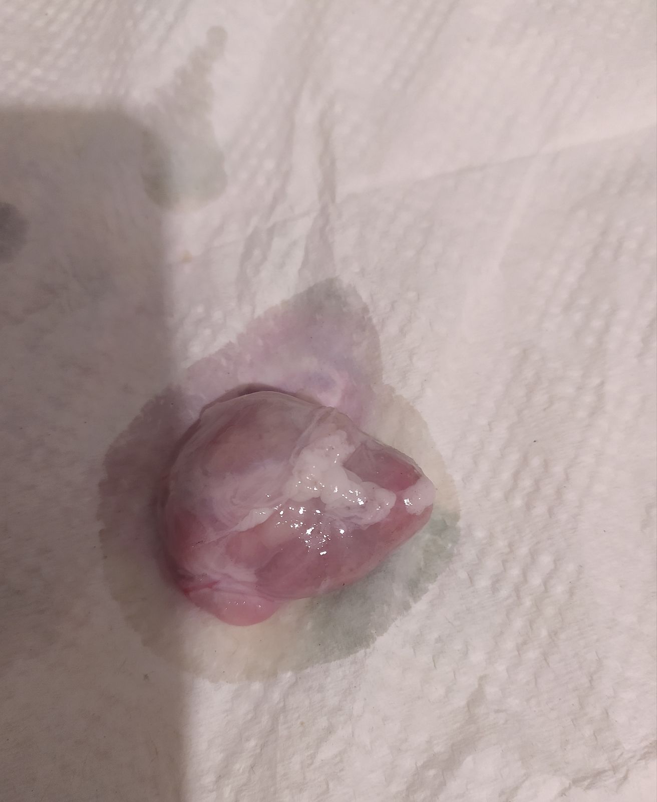 Купила ошеек, хотела сделать плов. Начала резать и в мясе обнаружила, похожее на опухоль в капсуле, на ощупь как грозди внутри. Размером с куриное сердце. Теперь так гадко от увиденного. И страшно мясо покупать, ведь другие части попались другим людям. Кто то видел подобное? Может я ошибаюсь, интересно они его как то проверяют или скупают, рубают и продают? Есть какие то нормы?
