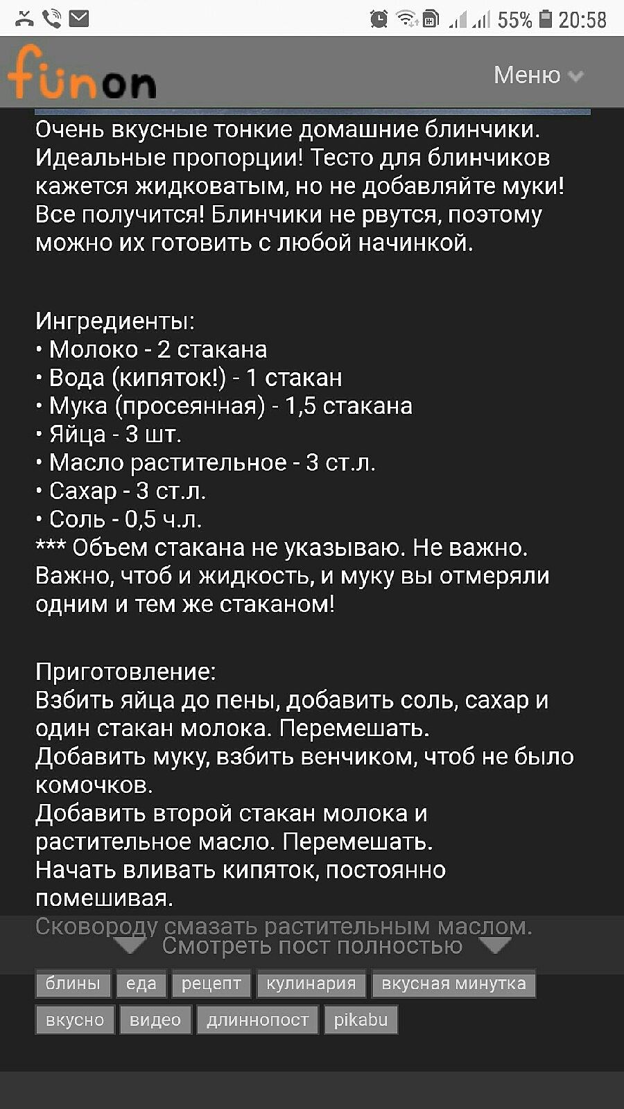 Получаются тонкие и эластичные блинчики. Вкусные.