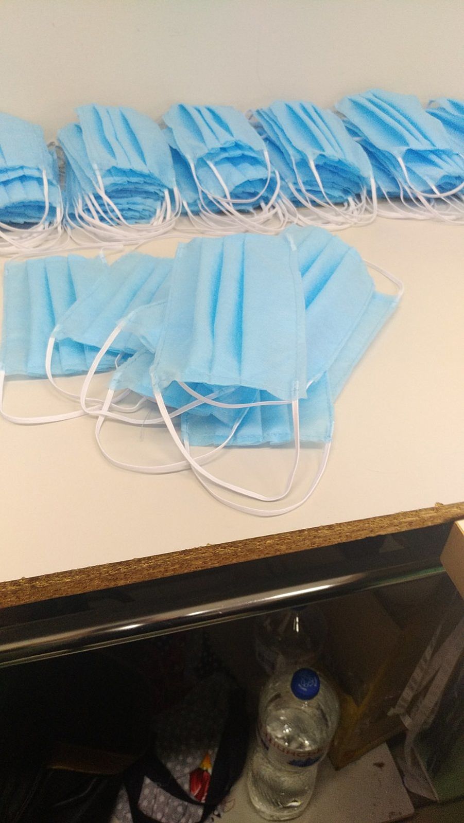 Вот все, что осталось - 3 марлевых заводских, почти упаковка флизелиновых и немножко больше пошитых марлевых. Вот продадим и неизвестно, сможем закупить или нет (