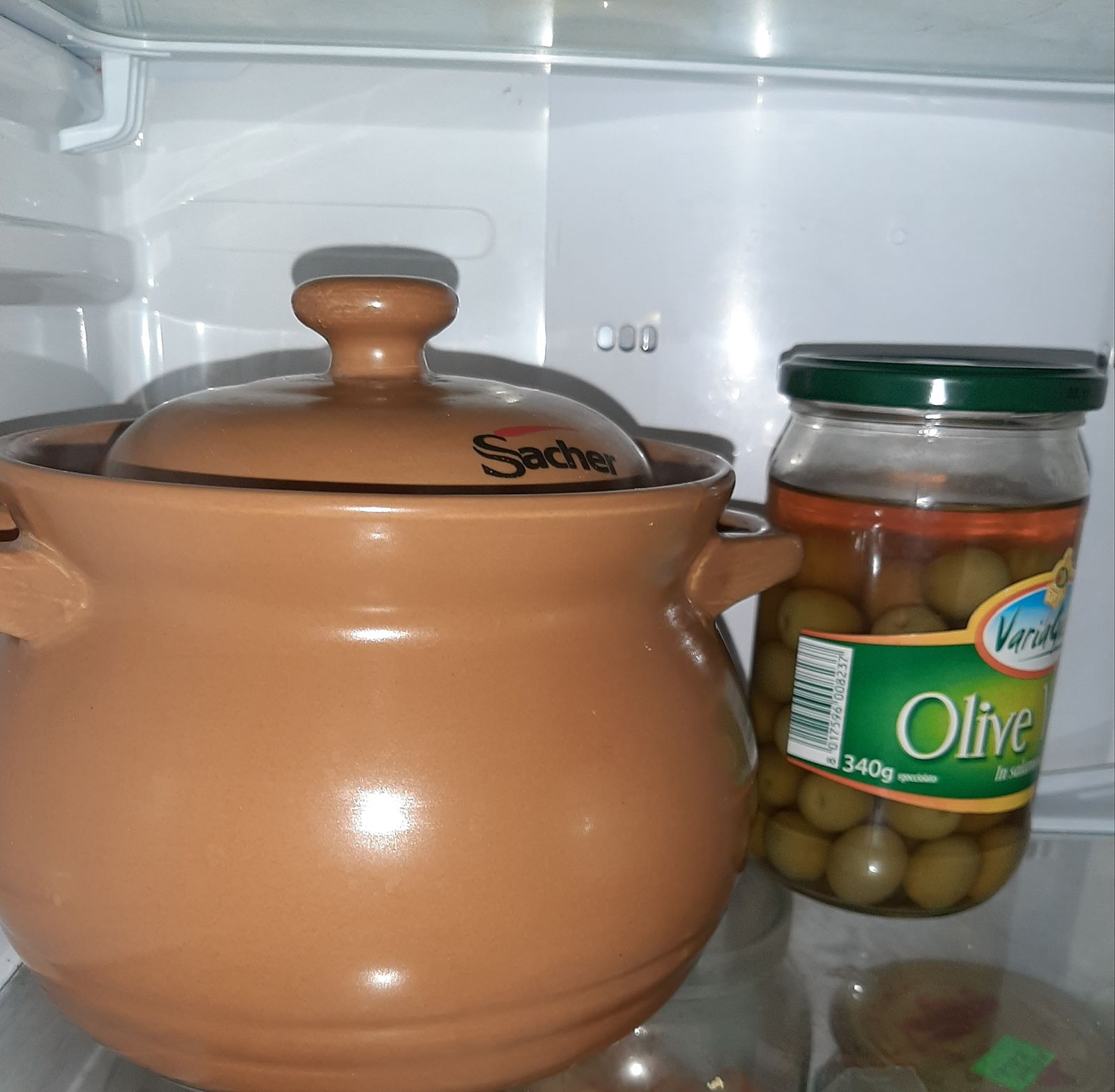 Судочка большого стеклянного нет у меня. Горячее предпочитаю складывать в кастрюльку, а не в пластик. Остыло, ставлю в холодильник, не перекладывая ещё раз. Судочки мыть ненавижу, посудомойки нет. В мой холодильник инспекция не ходит, а мне так удобно