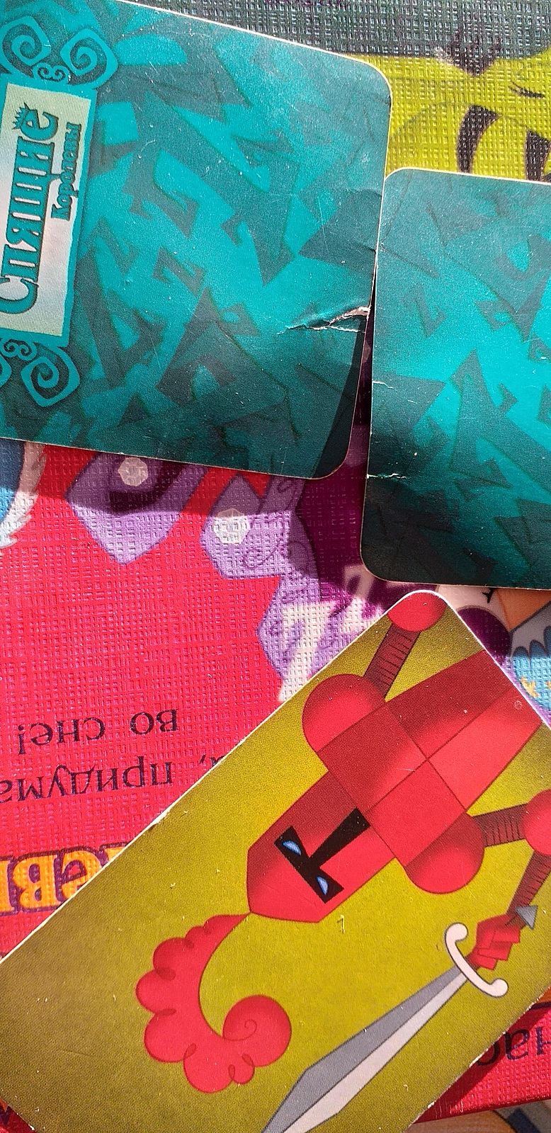 Заломы образовались сразу. Но у нас играли дети. Но все равно для такой цены, карты могли сделать получше. Игра на тройку, качество на два