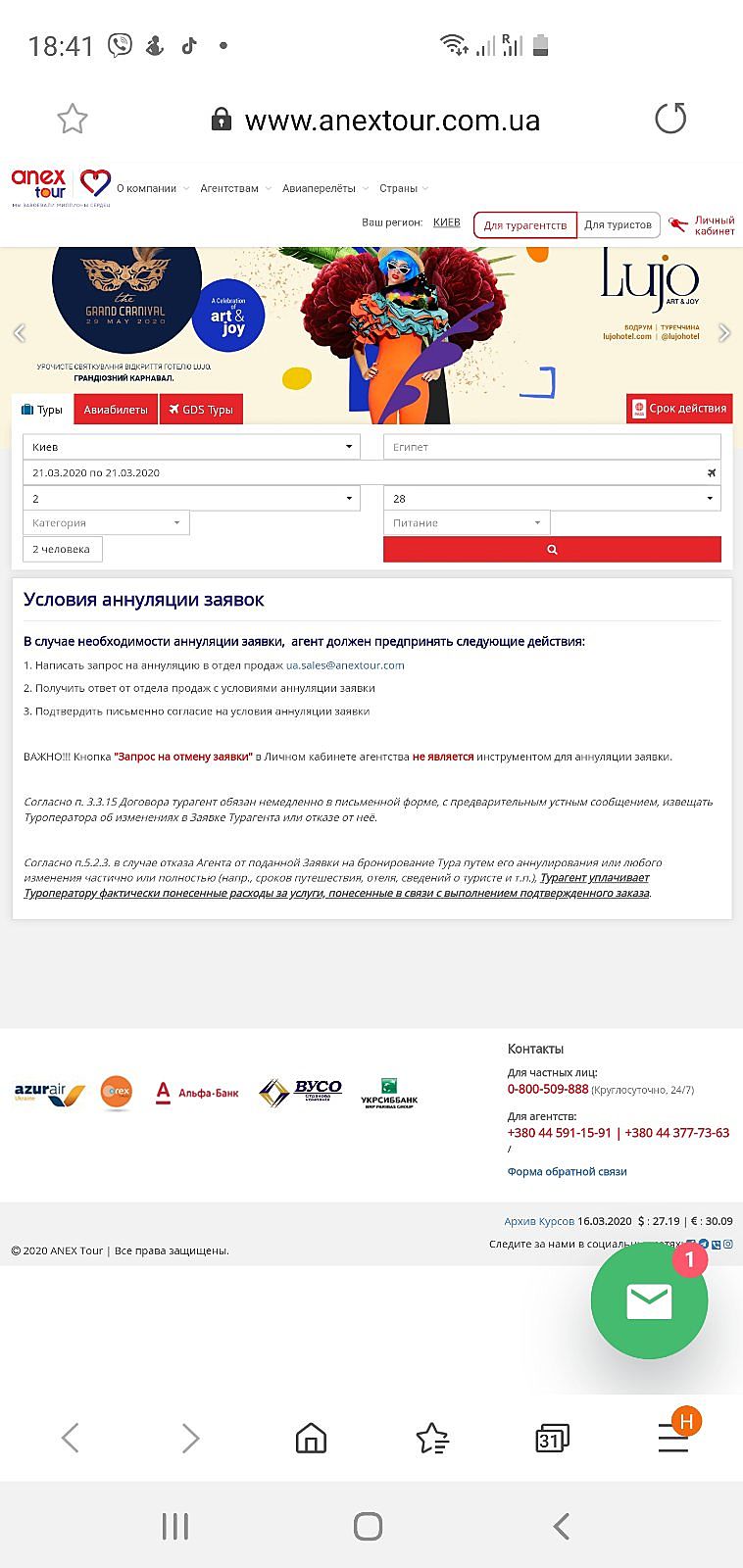 1. Написать запрос на аннуляцию в отдел продаж ua.sales@anextour.com