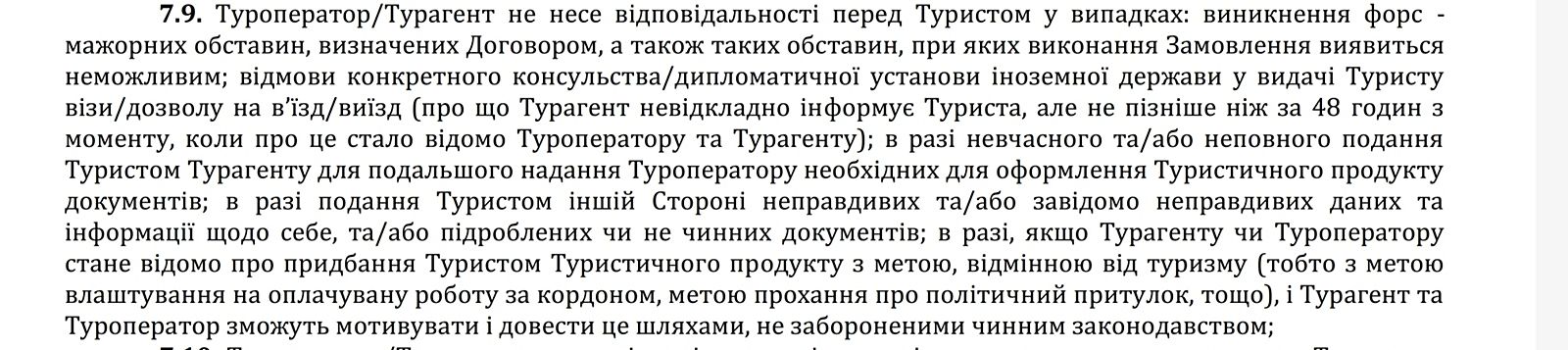 для рб - 100% драконовский контракт А какая ответственность туроператора? Что по форс-мажору написано?