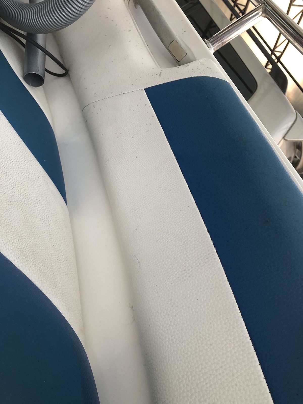 Только наверное нужно осторожно на синем дермантине. В средстве есть хлор, чтобы белыми пятнами не пошло.