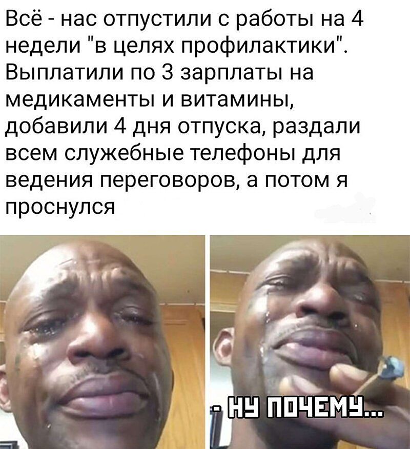 И эти люди среди нас! хватит уже панику разводить, уж чего чего а серьезных тем про ковид было с лихвой! не нравится не заходите и дайте другим возможность разрядки и посмеяться. Смех кстати продлевает жизнь и укрепляет иммунитет, чтоб вы знали.
