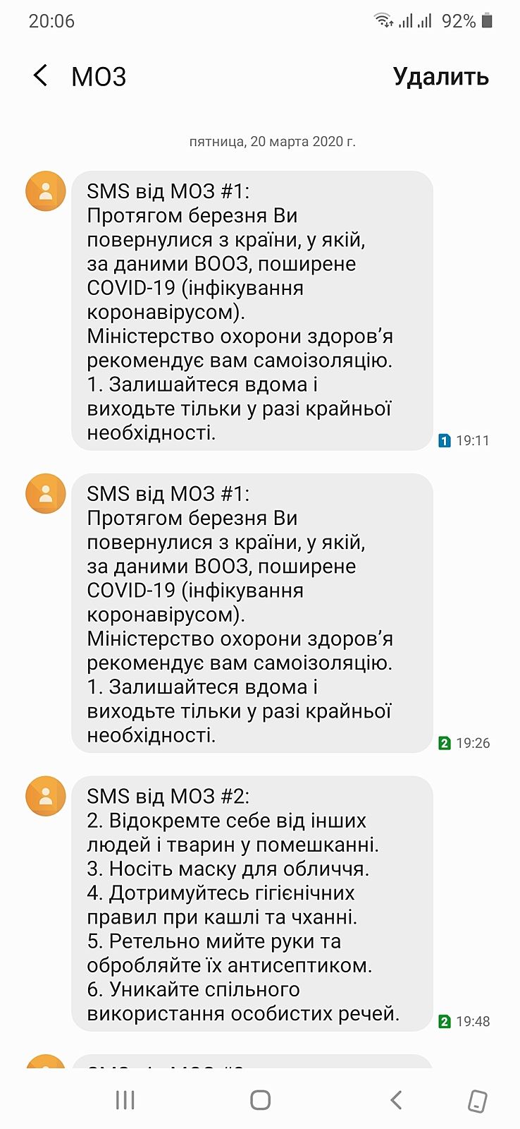 Мама в начале марта приехала из Польши, час назад получила такую же смс, 14 дней прошло, неделю назад переболела простудой и все.
