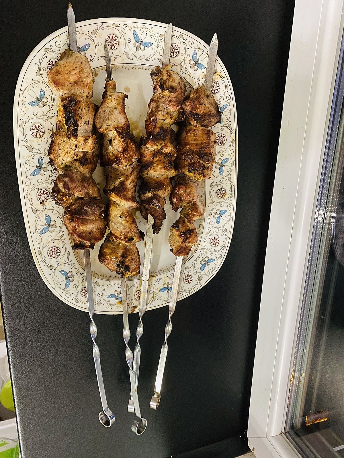 Я хочу , но холодно. Мы возле гаража жарим, это до карантина как раз...