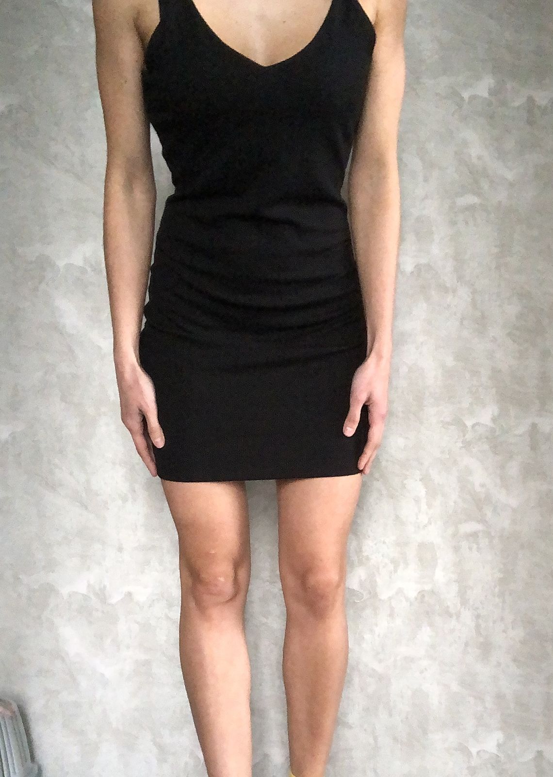 На модели оно хотя бы сидит, на вас какие-то складки, ни вверху некрасиво, ни внизу. Честно, никакое, даже платьем не назовешь. Вы стройная, хорошая и вот это нечто на вас ((((((((( Не мучайте ни себя, ни платье, оно того не стоит.