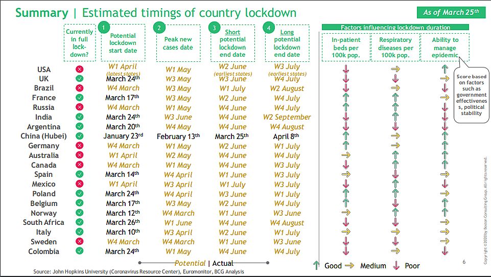 Boston Consulting Group провело исследование и составило прогноз для разных стран, когда примерно закончится карантин из-за коронавируса.